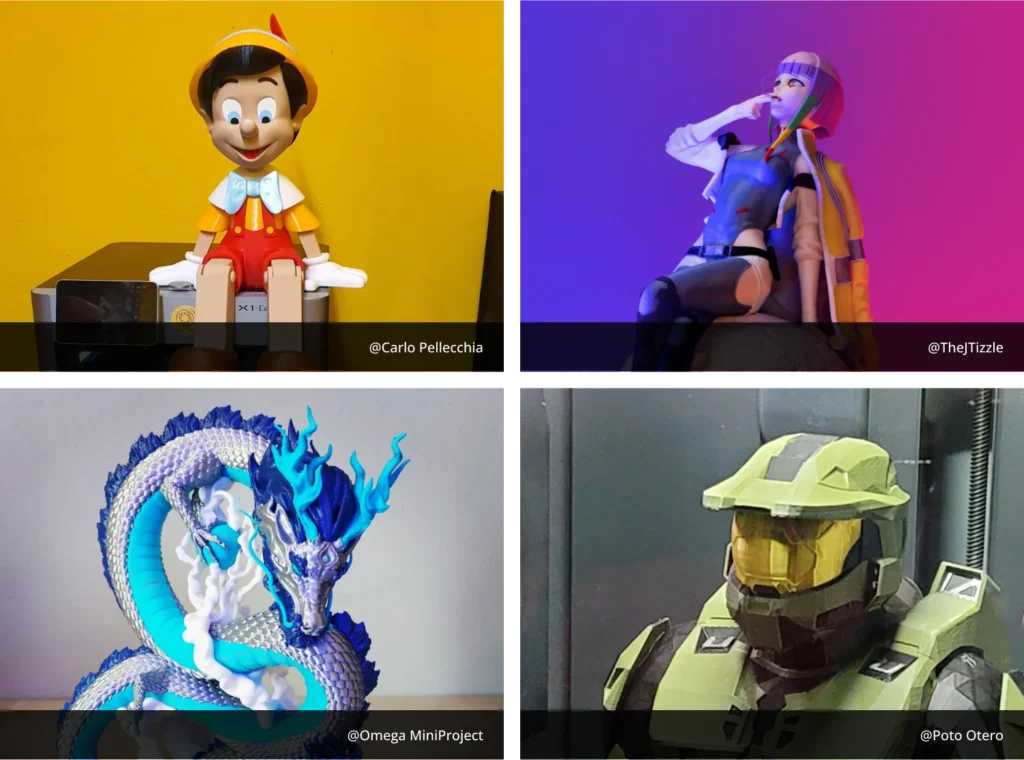 Bambu Lab X1-Carbon, equipado com resfriamento extra e bico e engrenagem de acionamento endurecidos, oferece uma seleção mais ampla de materiais, incluindo PA, PC, PET e TPU, e é especializado em polímeros reforçados com fibra de carbono e fibra de vidro.