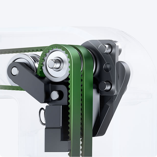 Graças às hastes lineares precisas e às correias dentadas,