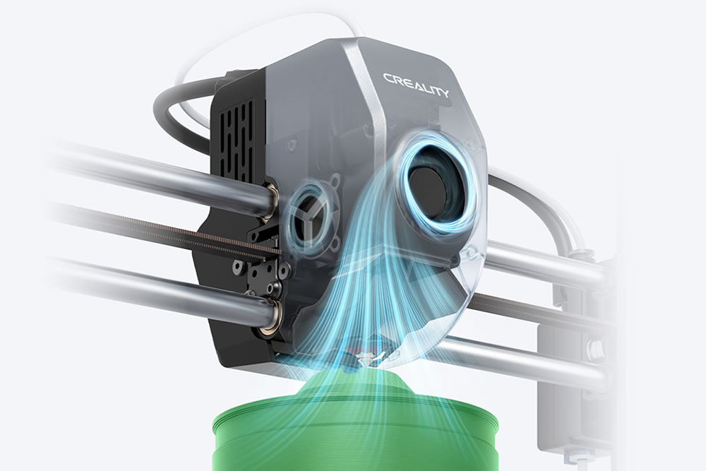 Os eixos X e Z da Ender-3 V3 são montados juntos, permitindo que dois motores de alto torque trabalhem em uníssono para uma resposta rápida em um piscar de olhos.