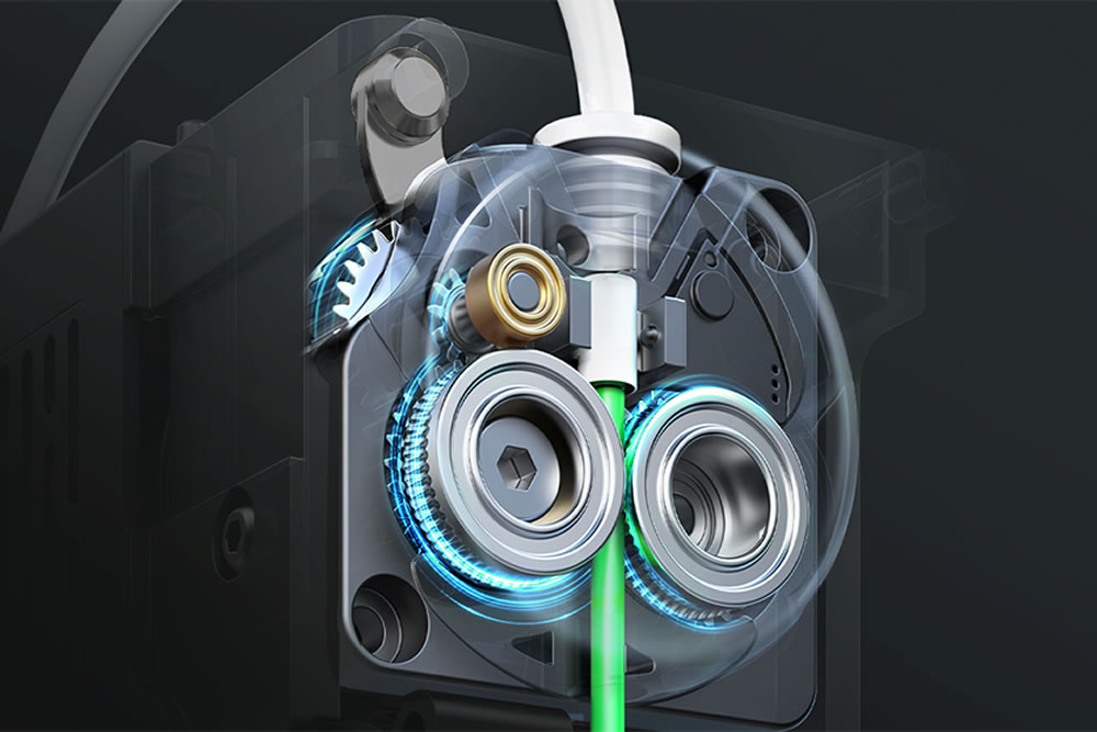 A extrusora de acionamento direto da Ender-3 V3 é reforçada por uma mola de reforço e um êmbolo esférico.